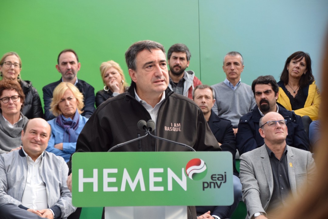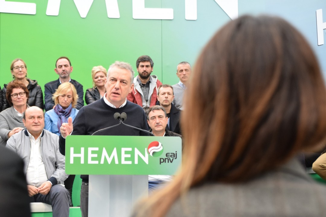 10N Mitin Donostia. Andoni Ortuzar, Iñigo Urkullu, Aitor Esteban, Maribel Vaquero, Joseba Agirretxea