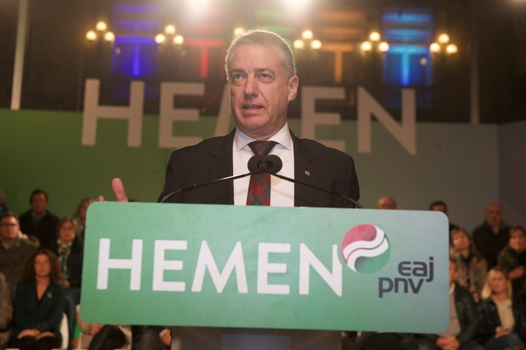 Mitin Gasteiz. Mikel Legarda, Almudena Otaola, Iñigo Urkullu, Andoni Ortuzar