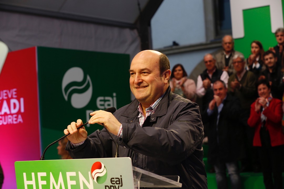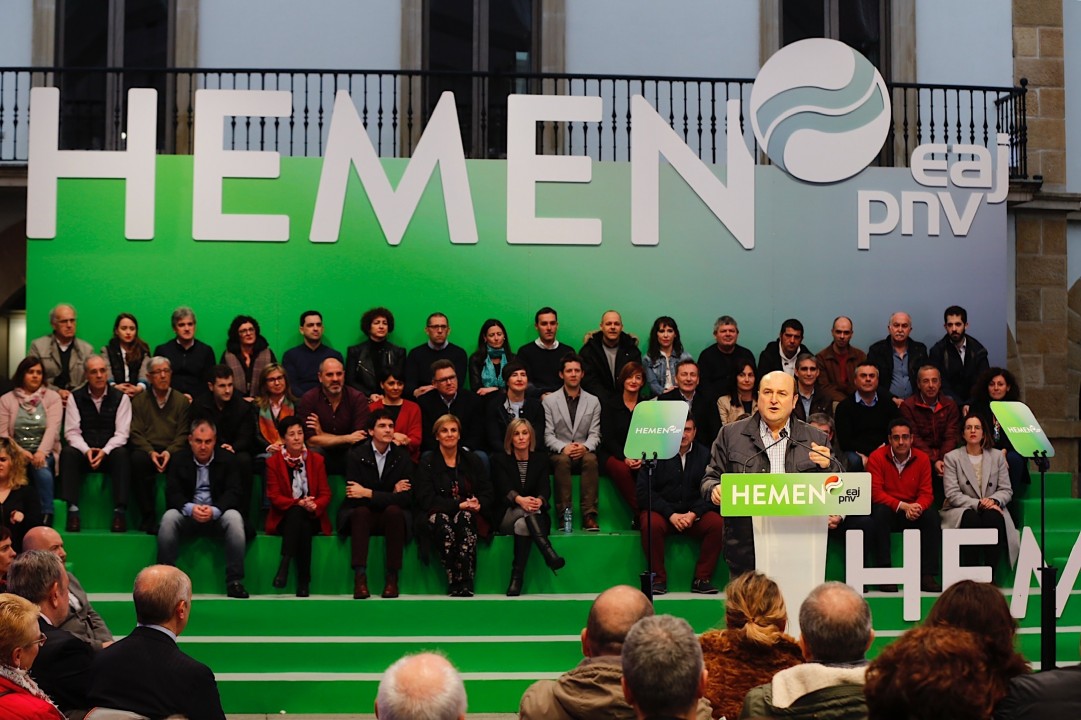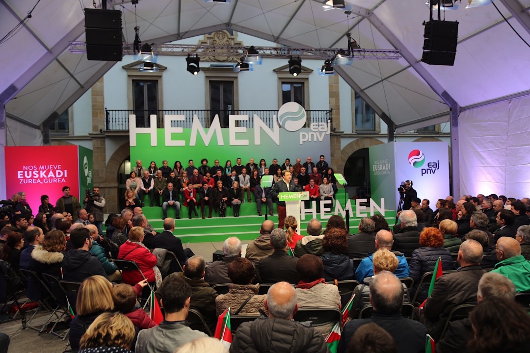 Amorebietan mitina. Andoni Ortuzar, Aitor Esteban, Idoia Sagastizabal