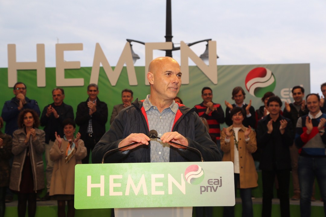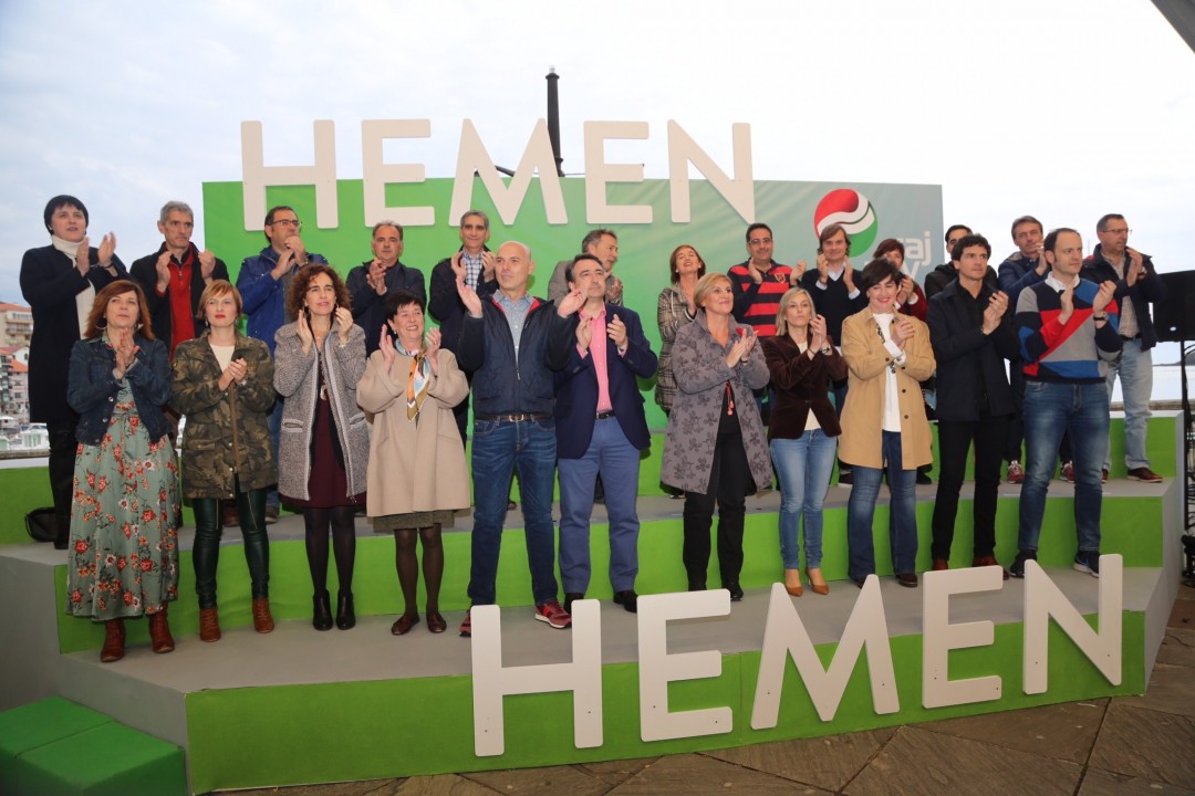 Lekeitioko mitina. Itxaso Atutxa, Aitor Esteban, Idoia Sagastizabal eta Koldo Goitia
